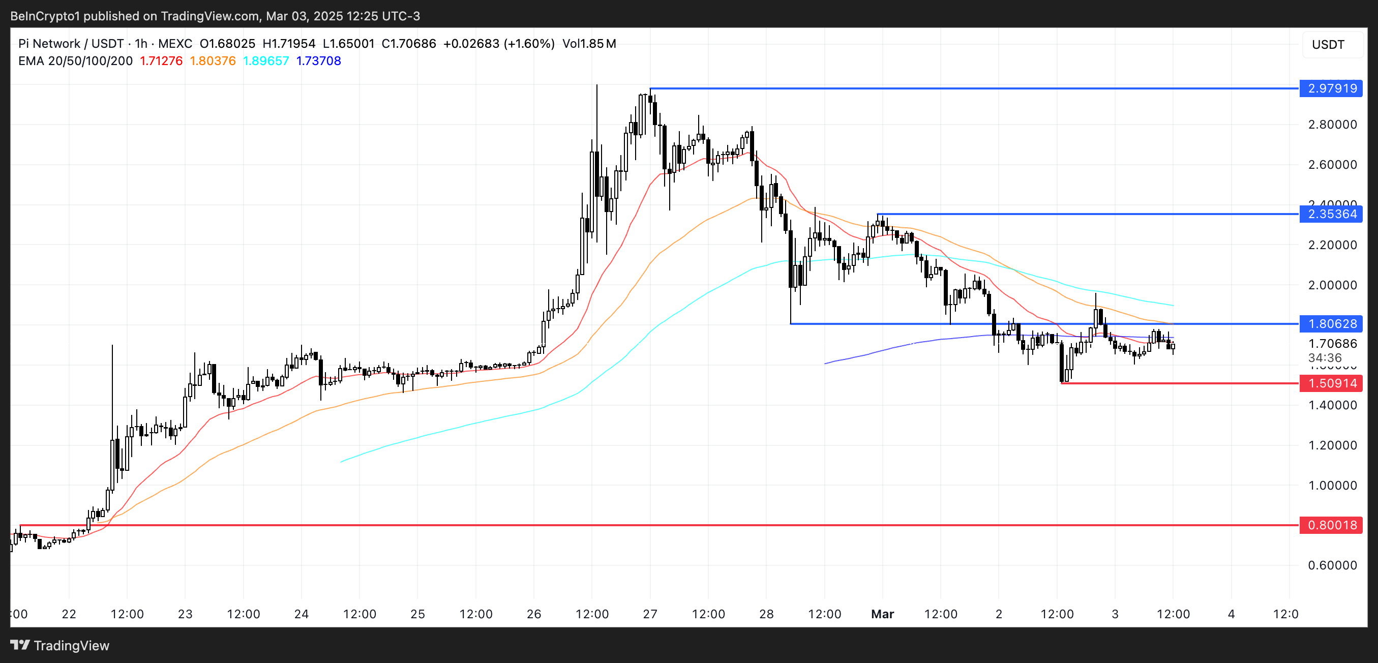على الجانب السلبي، إذا اشتدت ضغوط البيع واستأنف الاتجاه الهبوطي، يمكن أن تختبر PI مستوى الدعم $1,50.