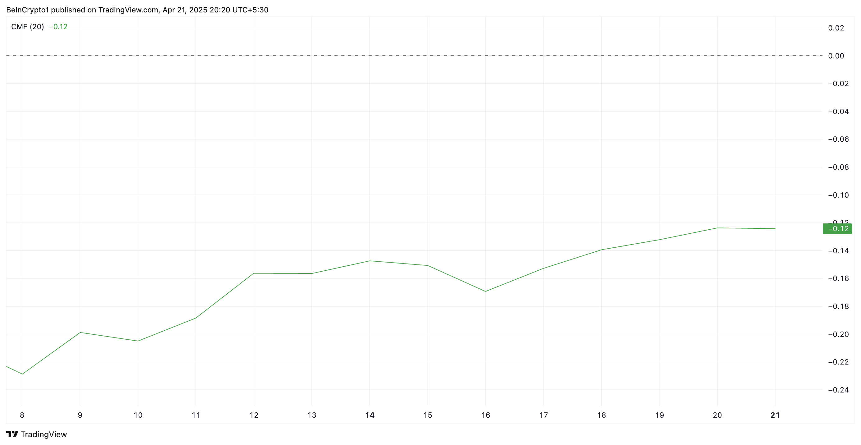 علاوة على ذلك، يدعم إعداد تدفق المال تشايكين (CMF) لـ PI هذا التوقع الهبوطي. في وقت النشر، هذا أقل من الخط المركزي عند -0,12.