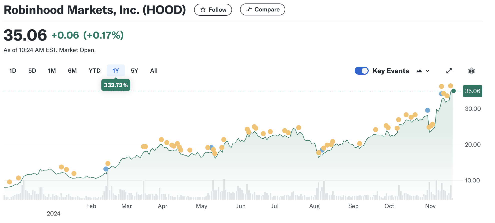 أسهمهم، التي قفزت بنسبة 1,5% قبل جرس الافتتاح، قد حققت مكاسب بلغت 332% في عام 2024 وقت كتابة هذا التقرير. بلغت أرباح الربع الثالث لعام 2024 14,4 مليار دولار، مما يمثل زيادة سنوية بنسبة 114% مقارنة بالربع الثالث من عام 2023.