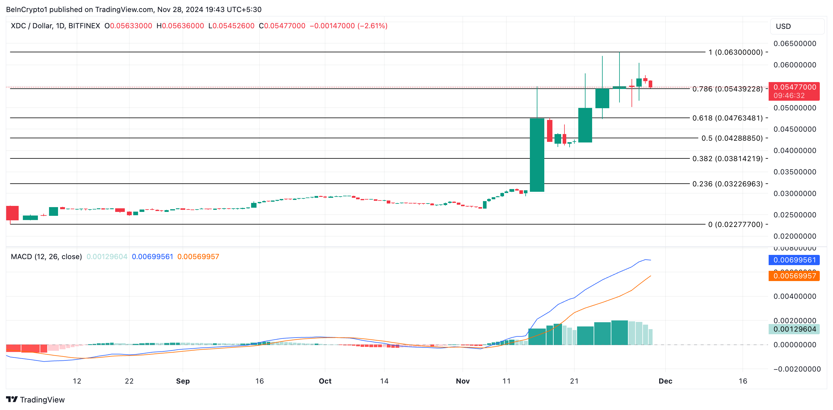 سيرتفع سعر XDC نحو $0,063 إذا تم الحفاظ على هذا الاتجاه. من ناحية أخرى، إذا ارتفعت عمليات بيع الرمز، قد ينخفض سعر XDC إلى $0,047، مما يغزو هذا التوقع الصعودي.