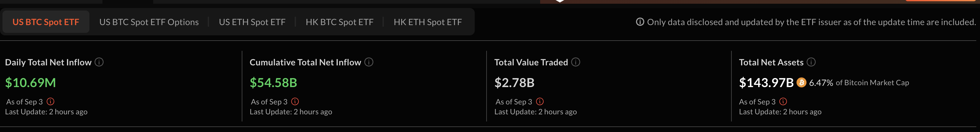 تعمل صناديق الاستثمار المتداولة كجهاز امتصاص هيكلي لضغط البيع، وهو شيء لم يكن موجودًا في الدورات السابقة، على الأقل ليس بهذه العدوانية. تبدو تدفقات أوائل سبتمبر حذرة، مع احتمال ارتباط المواقف بقرار الاحتياطي الفيدرالي القادم.