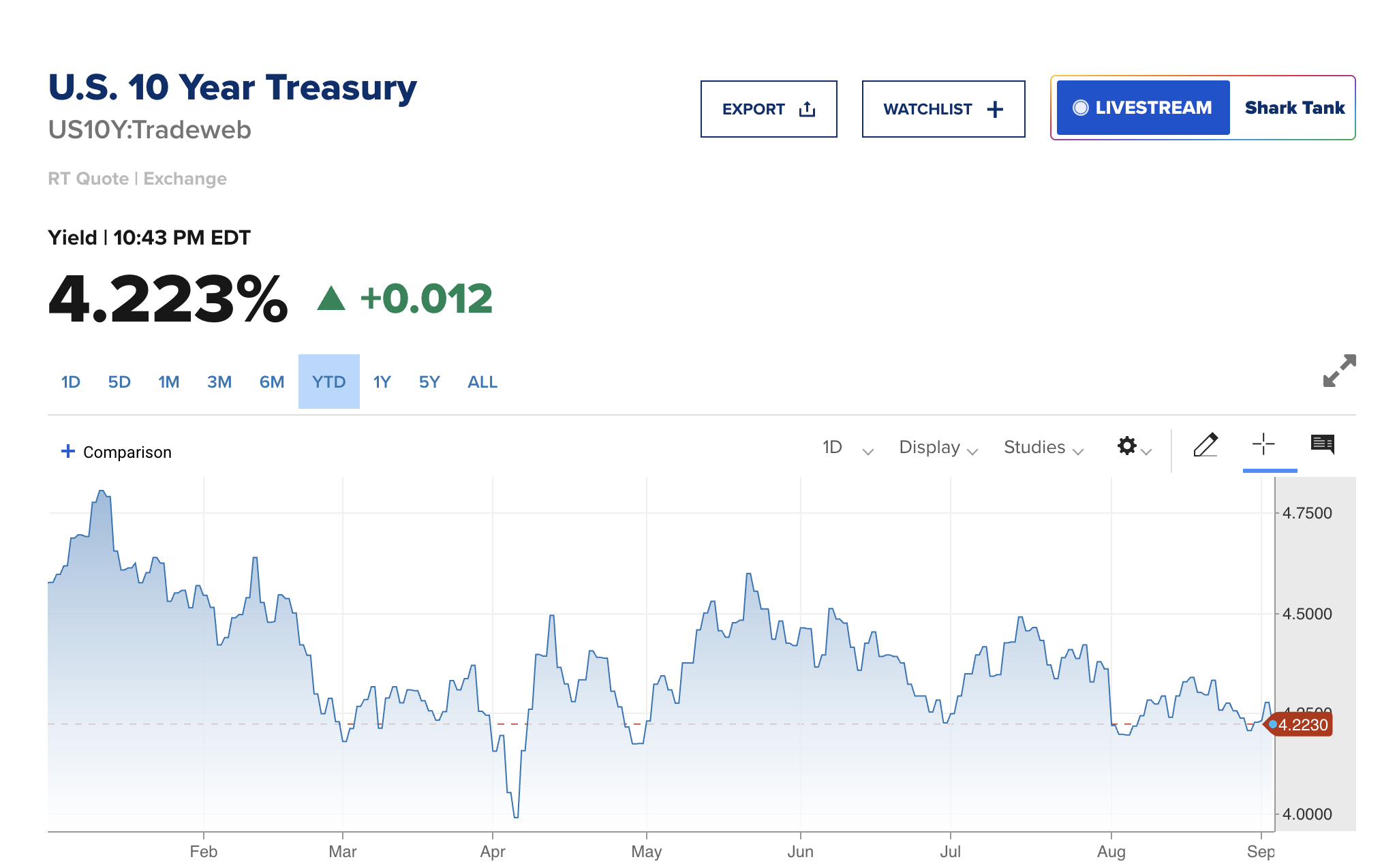 يشير العائد على سندات الخزانة الأمريكية لمدة 10 سنوات بنسبة 4,22% إلى تكاليف اقتراض أعلى وتفضيل أقوى للعوائد الآمنة. عندما تكون العوائد مرتفعة، يتحول رأس المال غالبًا بعيدًا عن الأصول الخطرة مثل بيتكوين، مما يشدد السيولة ويخفف من الزخم الصعودي.