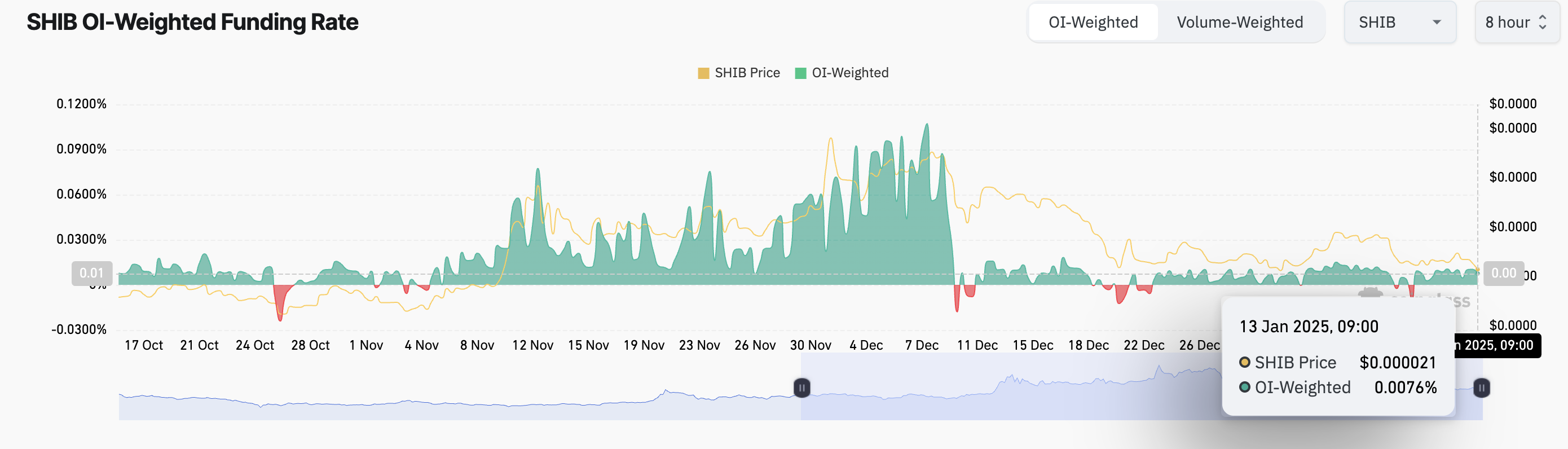 تاريخيًا، كانت نسبة MVRV السلبية إشارة للشراء. هذا يعني أن شيب يتداول بأقل من تكلفة اقتنائه التاريخية وقد يكون مستحقًا للارتداد. نتيجة لذلك، قد يرى المشاركون في السوق الذين يسعون إلى "الشراء بسعر منخفض والبيع بسعر مرتفع" هذه كفرصة لتجميع الرمز.
