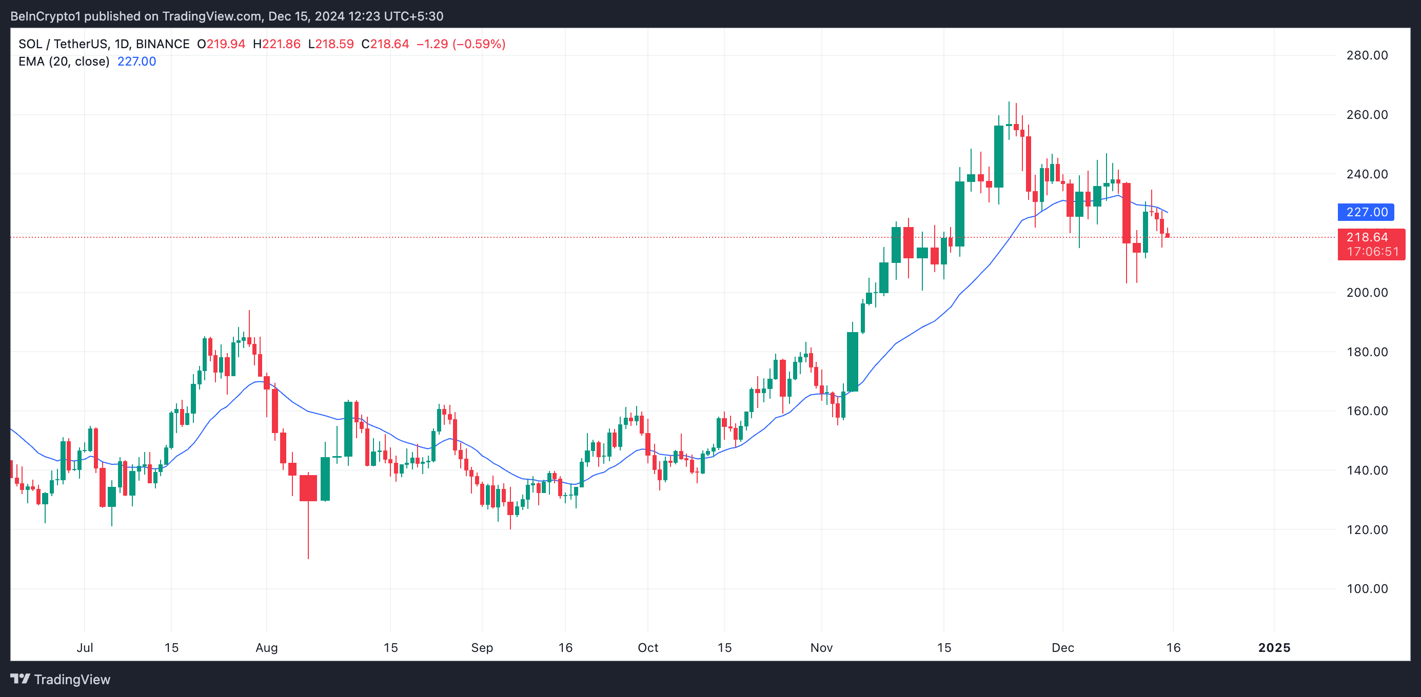 في حالة SOL، يتشكل هذا الحاجز عند 227$، والذي كافح سعرها لاختراقه في الأيام الستة الماضية.