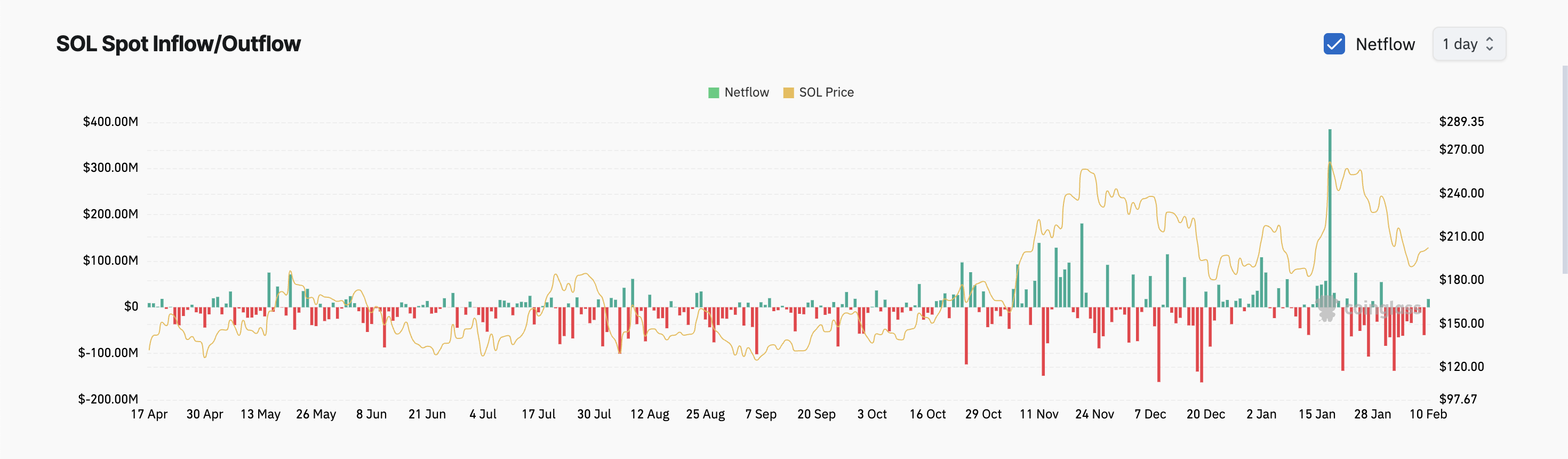 وفقًا لـ Coinglass، وصلت تدفقات السوق الفورية لـ SOL إلى 16 مليون دولار يوم الاثنين، مما يمثل أول تدفق كبير لها في 10 أيام. يأتي هذا الاهتمام المتجدد بالشراء بينما تحاول SOL البقاء فوق مستوى 200 دولار الرئيسي.