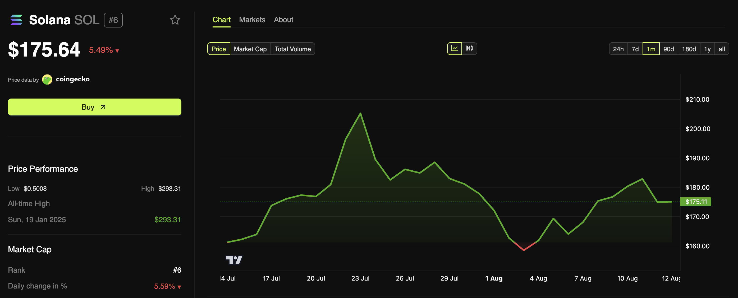 Sponsoredفي المقابل، شهدت العملات الرقمية الأخرى مثل ETH ارتفاعات كبيرة، حيث دفعت الاتجاهات الصعودية الأخيرة سعرها إلى مستويات لم تُشاهد منذ عام 2021. علاوة على ذلك، انخفضت SOL بنسبة 5,49% خلال اليوم الماضي. في وقت النشر، كانت تتداول عند $175,64.