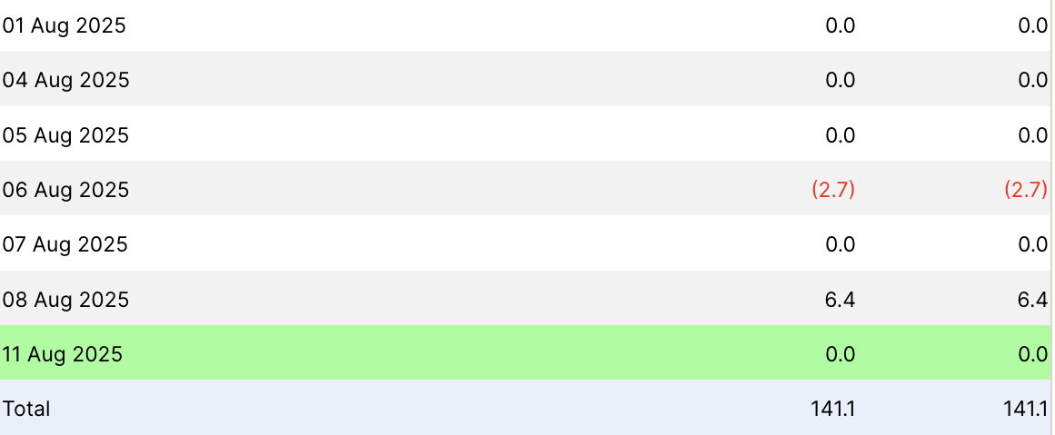 وفقًا لبيانات من Farside Investors، سجل الصندوق تداولات صافية صفرية لمعظم جلسات التداول في أغسطس، مع يوم واحد فقط من التدفق الإيجابي.
