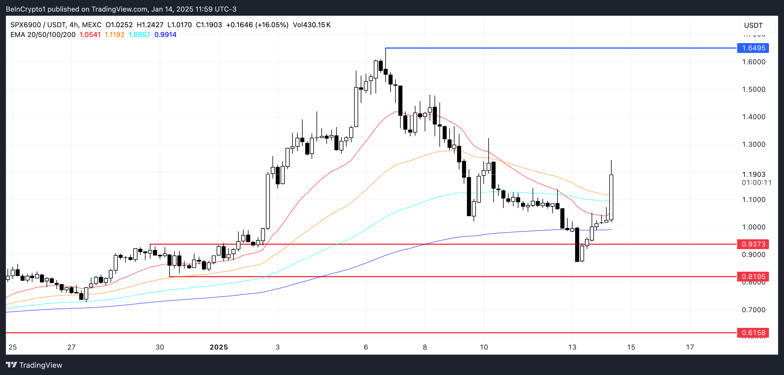 بينما يظهر السعر إمكانية الارتفاع إلى 1,64 دولار، تظل مستويات المقاومة والدعم الرئيسية حاسمة في تحديد الحركة التالية. إذا تراجع الزخم، قد يشهد SPX تصحيحًا حادًا، مما قد يختبر 0,93 دولار، 0,81 دولار، أو حتى 0,61 دولار.