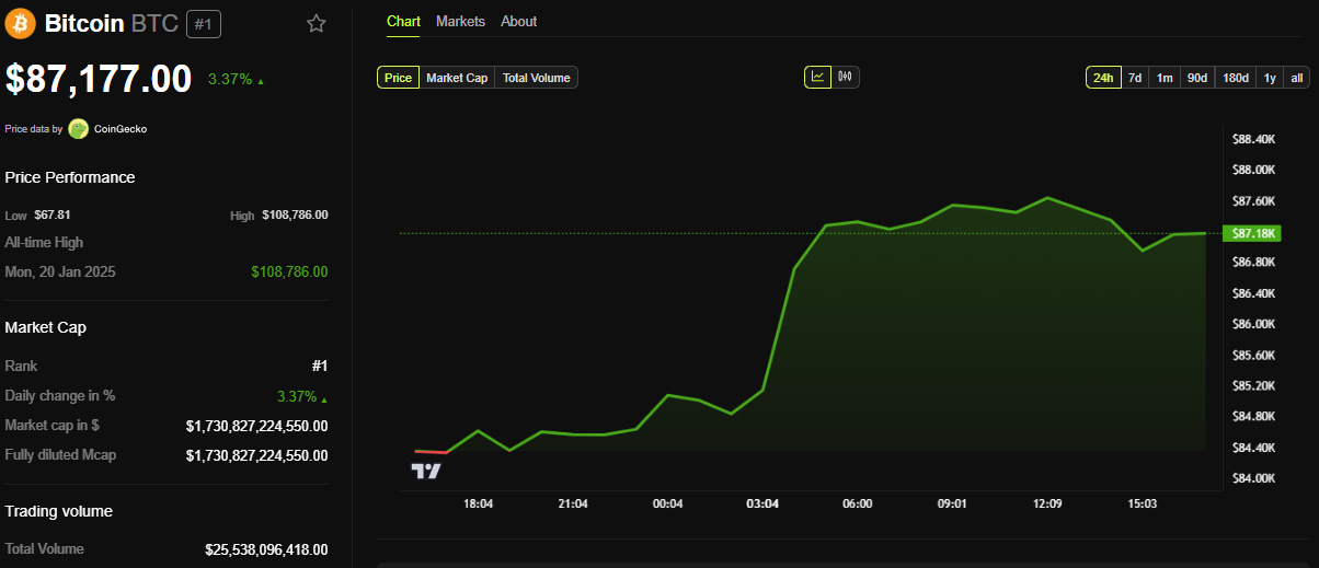 - جمعت حيتان بيتكوين 53,652 btc بقيمة 4,7 مليار دولار في شهر، مما دفع السعر إلى 87,463 دولار، ولكن أرباح الحائزين على المدى الطويل وصلت إلى أدنى مستوى لها في عامين.