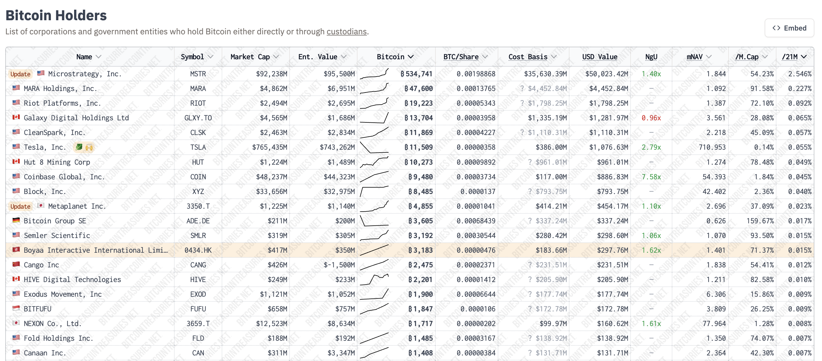 بعد شرائها الأولي في فبراير 2021 وبيع 75% من حيازاتها من بيتكوين في يوليو 2022، تحتفظ تسلا حاليًا بحوالي 11,509 BTC.