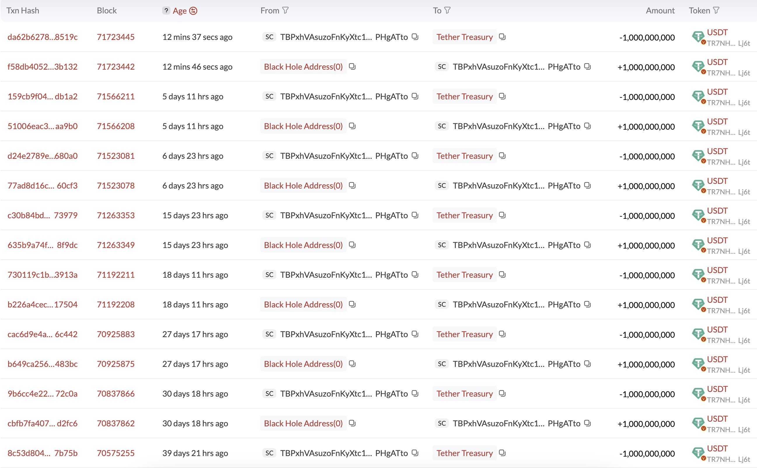 تيثر، أكبر شبكة عملات مستقرة في العالم، كانت تقوم بسك رموز USDT بشكل مستمر خلال الأشهر القليلة الماضية. قامت بسكة 19 مليار في فترة بين نوفمبر وديسمبر من العام الماضي وأضافت مليار آخر بعد أقل من أسبوع.