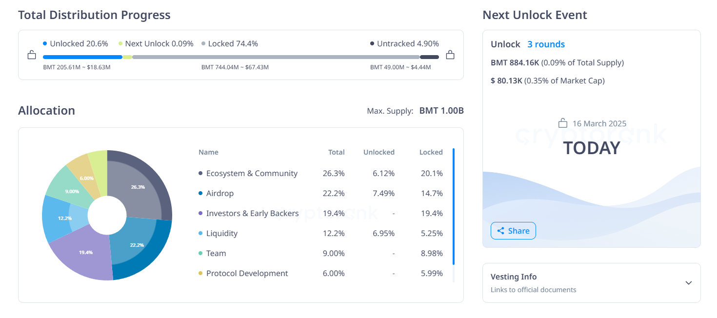 - عدد الرموز التي سيتم فتحها: ٨٨٤,١٦ ألف BMT يوميًا (٠,٠٩% من الحد الأقصى للعرض)