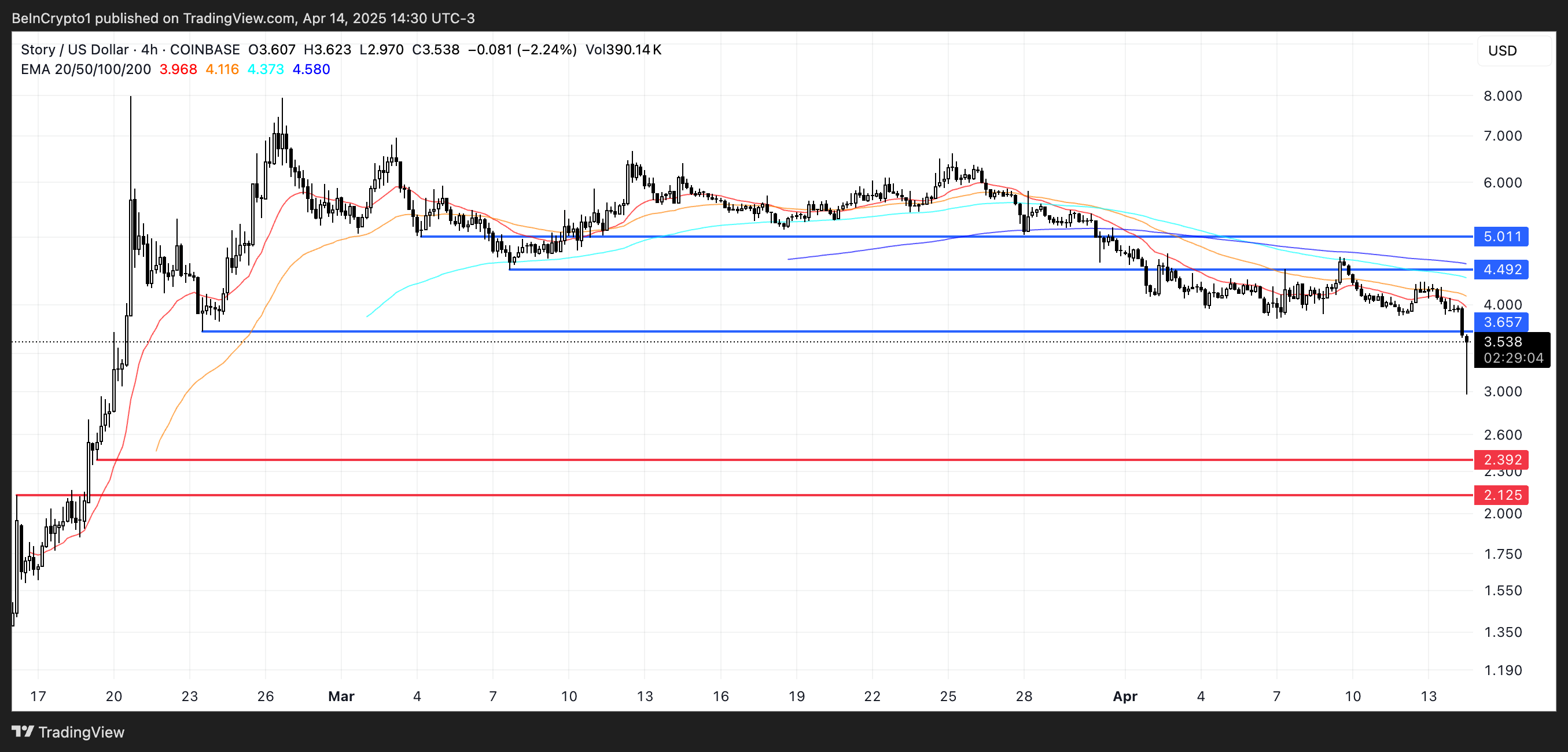 إذا تحول الزخم لصالح Story، يمكن أن يرتفع الرمز لإعادة اختبار مستوى المقاومة $3,65. بعد ذلك، لديه إمكانية الاختراق إلى $4,49 وحتى $5.