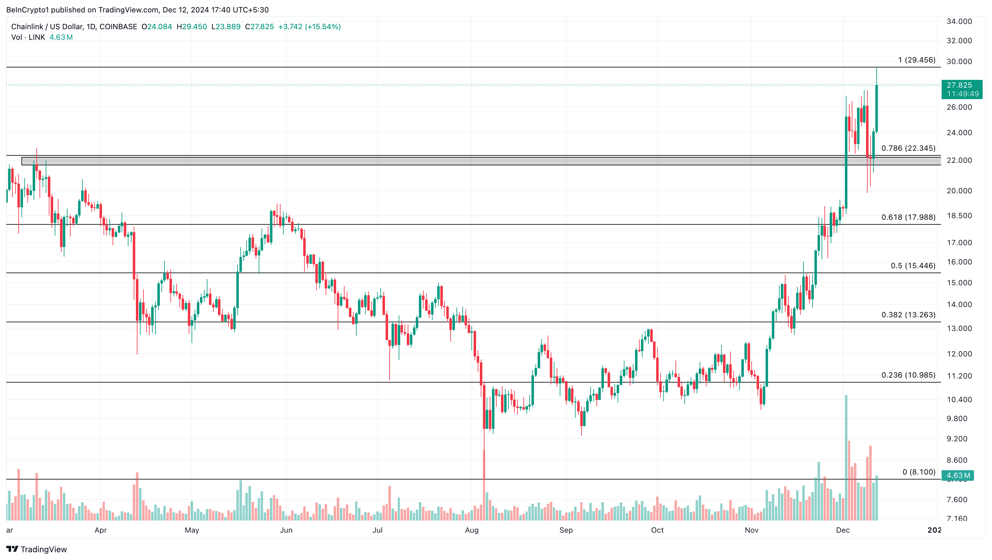 من وجهة نظر فنية، حول سعر LINK المقاومة السابقة عند $22,34 إلى دعم. هذا يشير إلى أن العملة البديلة قد تتجنب أي تصحيح معلق.
