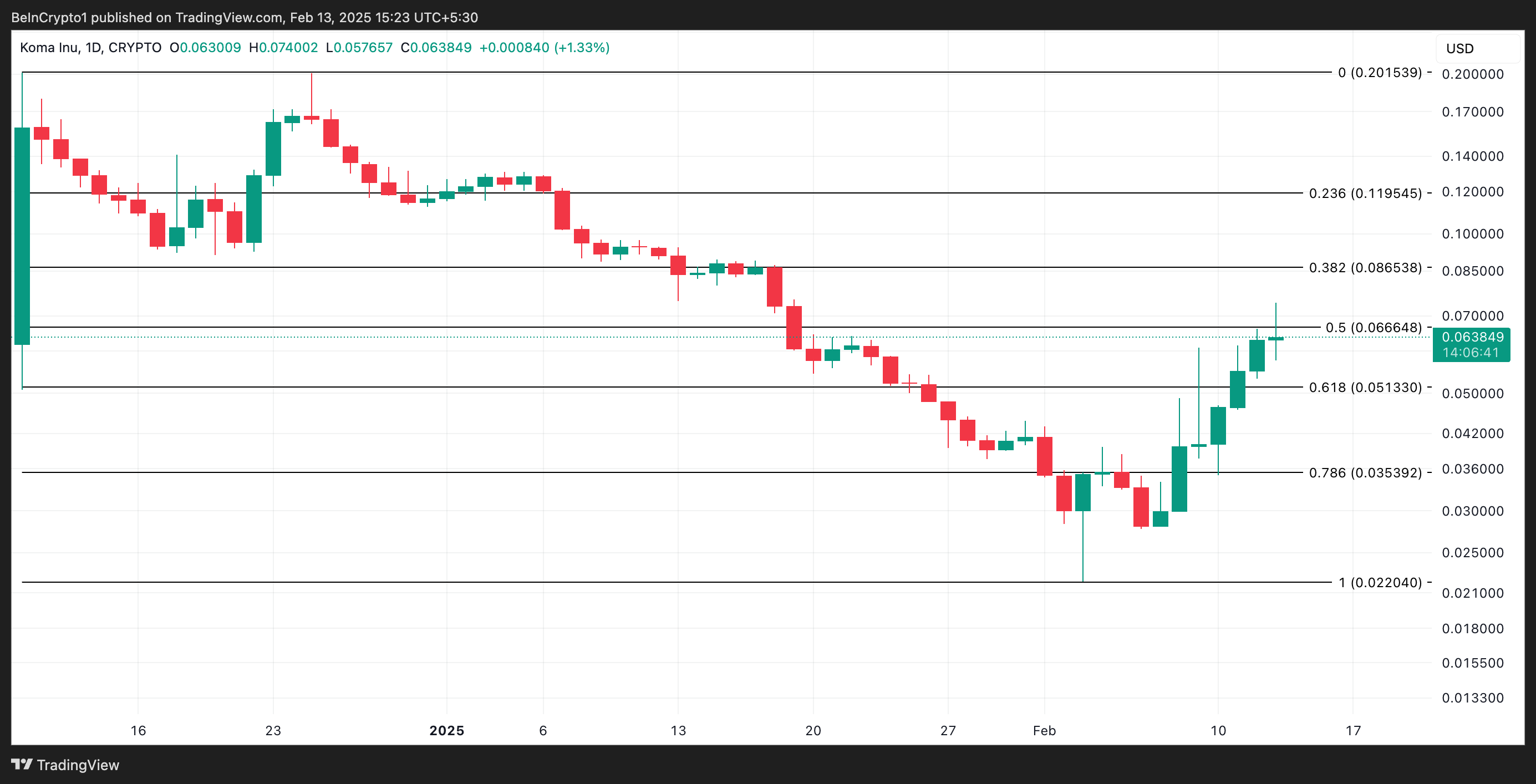 يمثل هذا الارتفاع المزدوج استمراراً لارتفاع سعر KOMA الممتد، الذي بدأ بعد أن انخفض إلى أدنى مستوى له على الإطلاق عند 0,022 دولار في 3 فبراير. منذ ذلك الحين، ارتفعت قيمة عملة الميم بنسبة 186%.