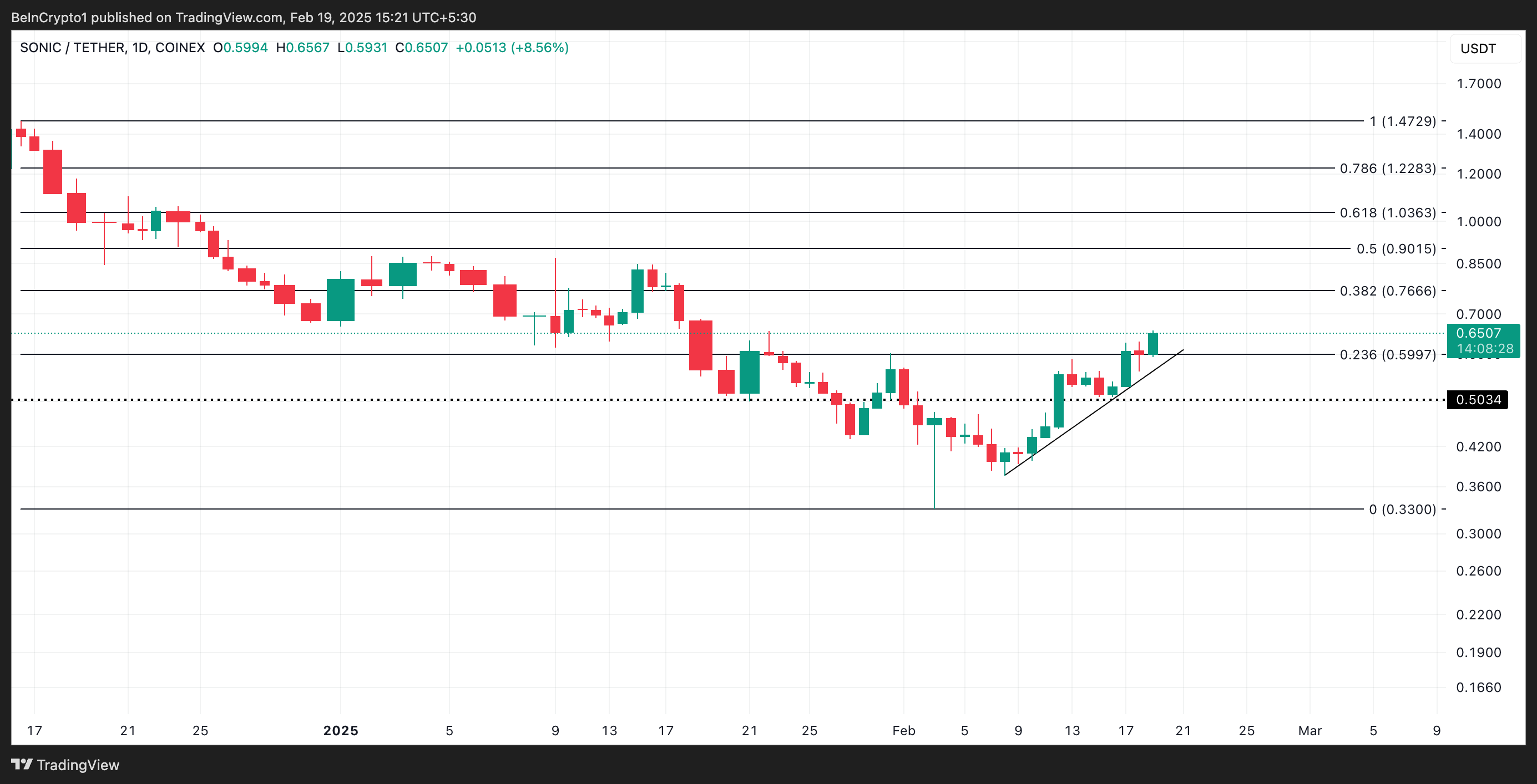 سونيك (S)، المعروف سابقًا باسم فانتوم (FTM)، هو عملة بديلة أخرى رائجة اليوم. لقد تحدى أيضًا الاتجاه العام للسوق، حيث ارتفع بنسبة 10% في الـ24 ساعة الماضية. في وقت النشر، S عند 0,65 دولار، وهو أعلى مستوى له منذ 25 يناير.