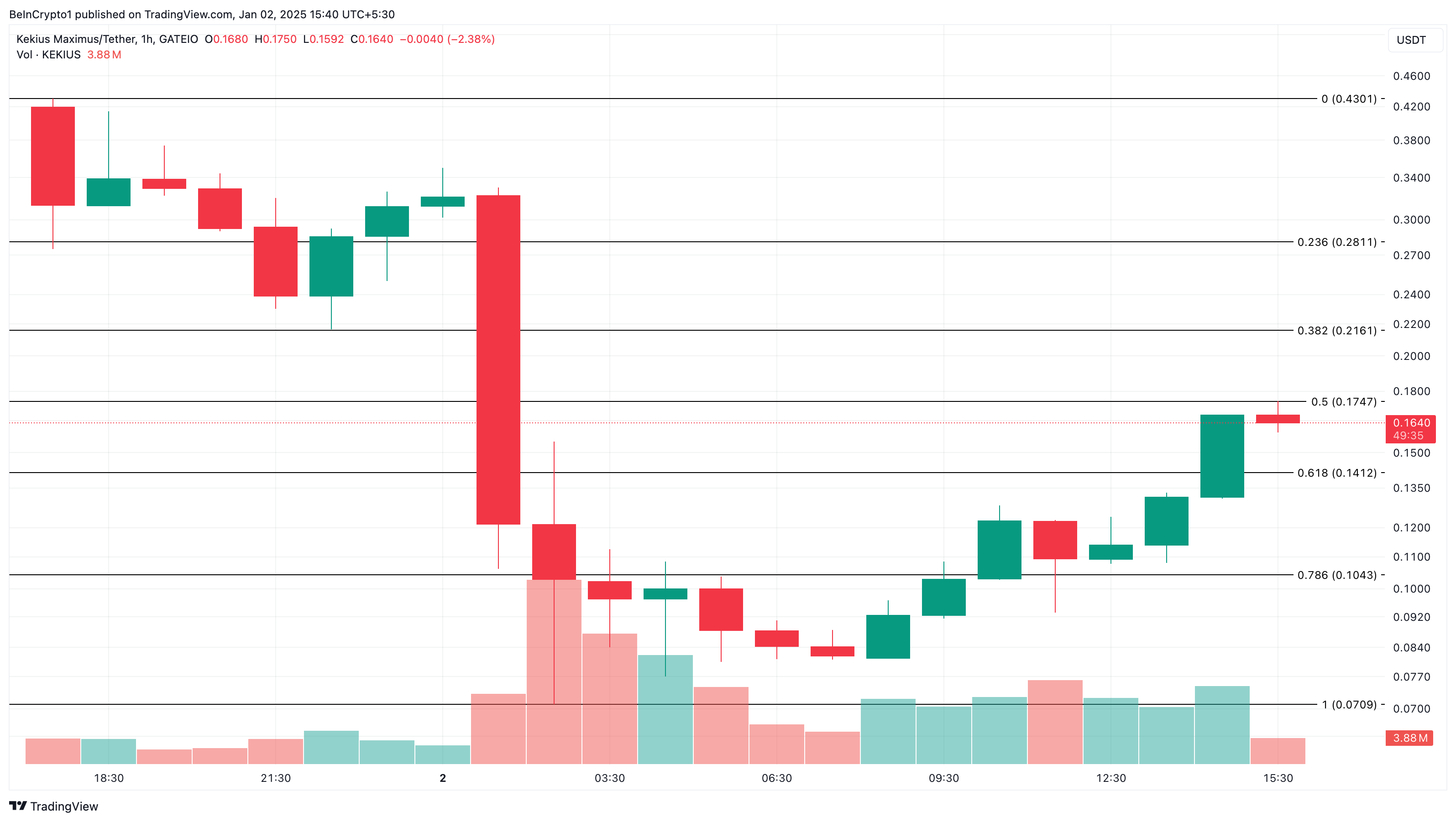 لكن، يظهر الرسم البياني لمدة ساعة واحدة أن الرمز قد محا بعض تلك الخسائر. إذا استمر ذلك، قد يرتفع قيمة KEKIUS نحو $0,28 في المدى القصير. على الجانب الآخر، إذا سيطر الدببة على حركة السعر، فقد ينخفض إلى $0,10.
