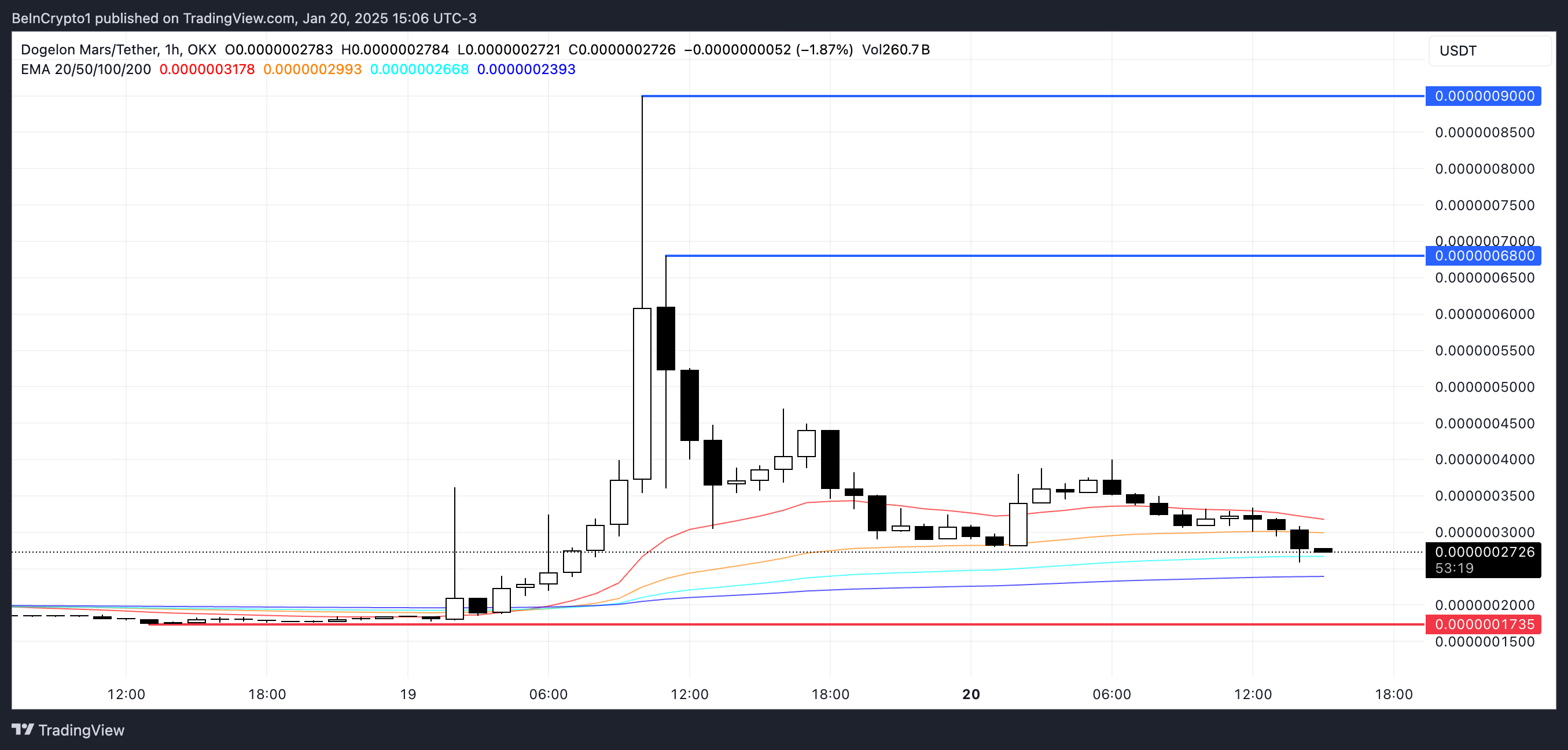 تتجه عملة دوجيلون مارس (ELON)، وهي عملة ميم تشير إلى إيلون ماسك، وسط الضجة المحيطة بتنصيب دونالد ترامب. جلب الدعم المتصور من ماسك لترامب اهتمامًا متجددًا بالعملات البديلة المرتبطة بماسك، مما زاد من شعبيتها.