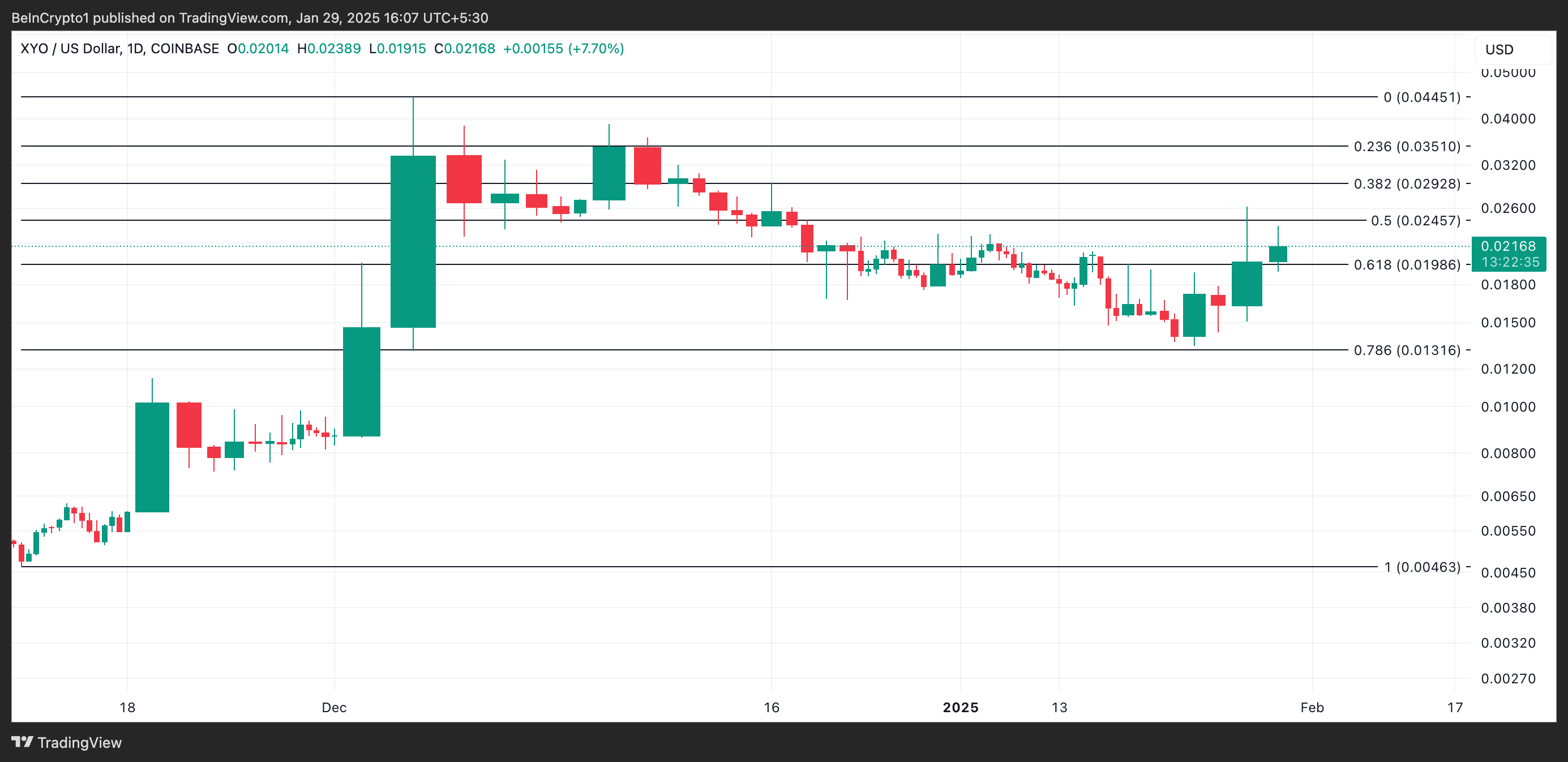 إذا اكتسب الطلب مزيدًا من الزخم، فقد يدفع سعر إكس واي أو لتجاوز المقاومة عند $0,024 والتوجه نحو $0,029. من ناحية أخرى، إذا استأنفت نشاطات البيع، فقد ينخفض سعر الرمز إلى $0,019.