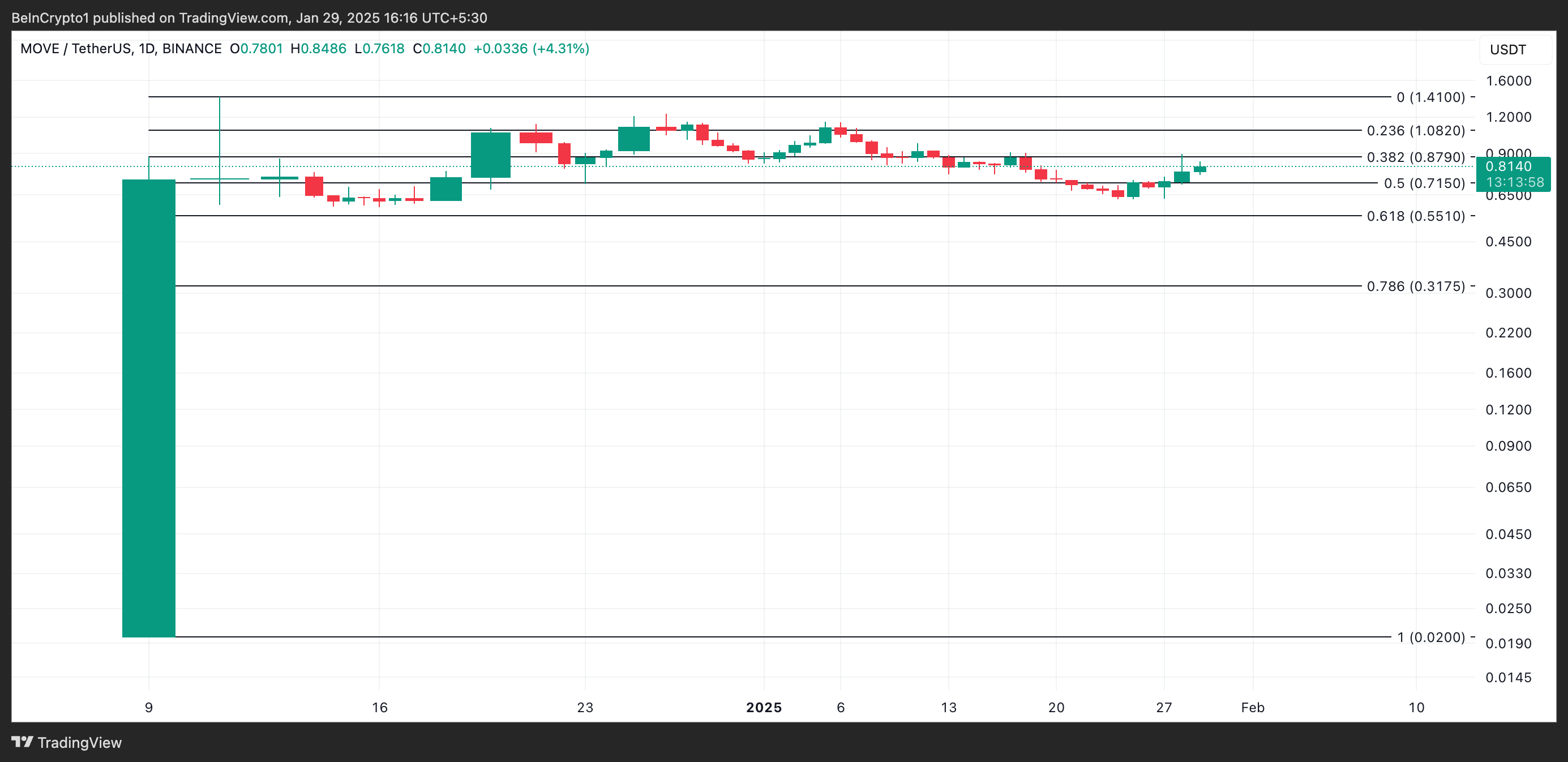 إذا استمر هذا الاتجاه الصعودي، يمكن أن يكسر سعر MOVE فوق 0,87$ ليتداول عند 1,08$. ومع ذلك، فإن عودة نشاط جني الأرباح ستدفع قيمة MOVE إلى الانخفاض إلى 0,71$.