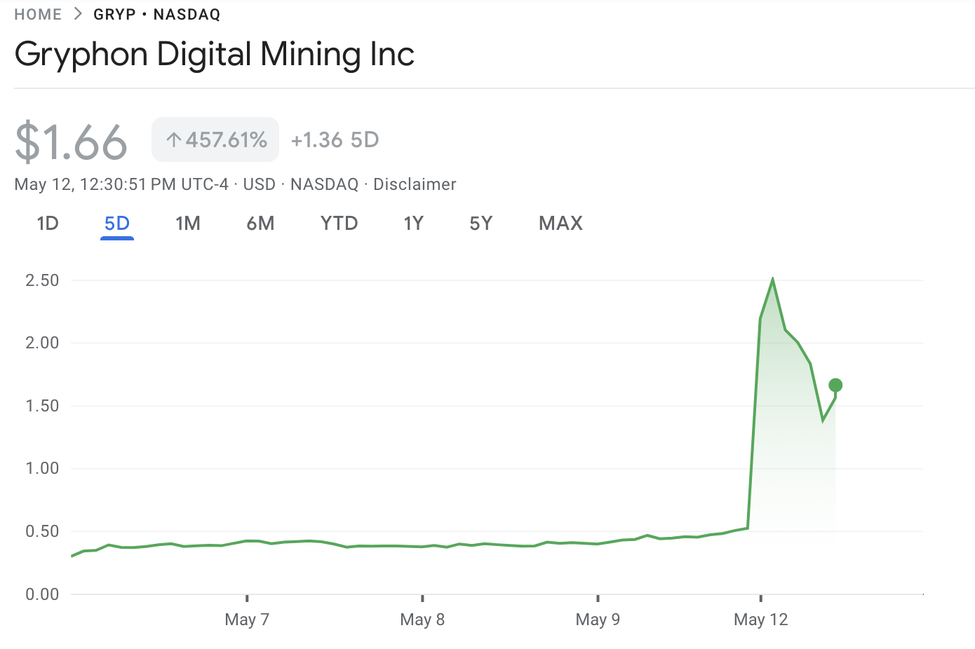 ومع ذلك، تسببت أخبار الاندماج في ارتفاع سعر سهم Gryphon بأكثر من 200%.
