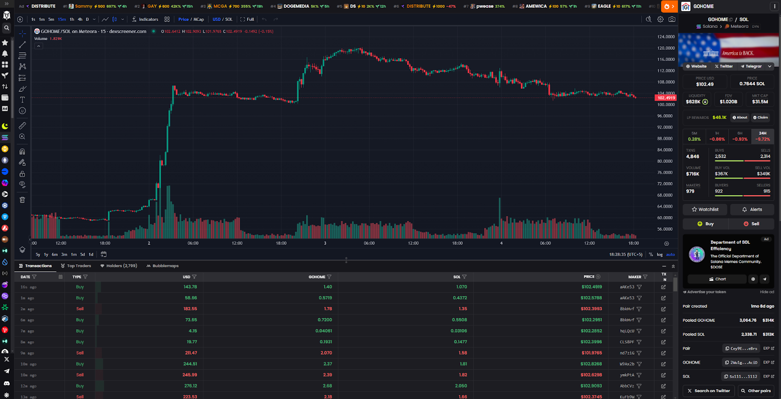 يقوم مالكو المشروع بشراء رموز $GOHOME باستمرار للحفاظ على ارتفاع السعر بشكل مستمر.