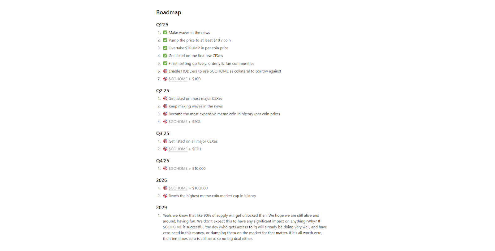 ومع ذلك، نظرًا لأن معظم المستثمرين لم يتمكنوا من ركوب الموجة والآن يبحثون عن مشاريع جديدة مماثلة، فإن مشاريع مثل $GOHOME تملأ هذه الفجوة. إنها تمنح المستثمرين طريقة جديدة لكسب المال قبل أن يصبح المجال مشبعًا بمزيد من المشاريع.