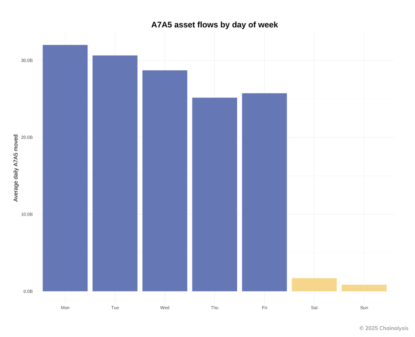 أطلقت A7A5 في قيرغيزستان في عام 2025 وسرعان ما أصبحت العملة المستقرة المدعومة بالروبل الأولى. تقارير شركة التحليلات على السلسلة إيليبتك أن الرمز قد تعامل مع ما يصل إلى 41,2 مليار دولار في التحويلات منذ إطلاقه. يتجاوز حجم التداول اليومي له 1 مليار دولار، وبلغت قيمته السوقية 521 مليون دولار.