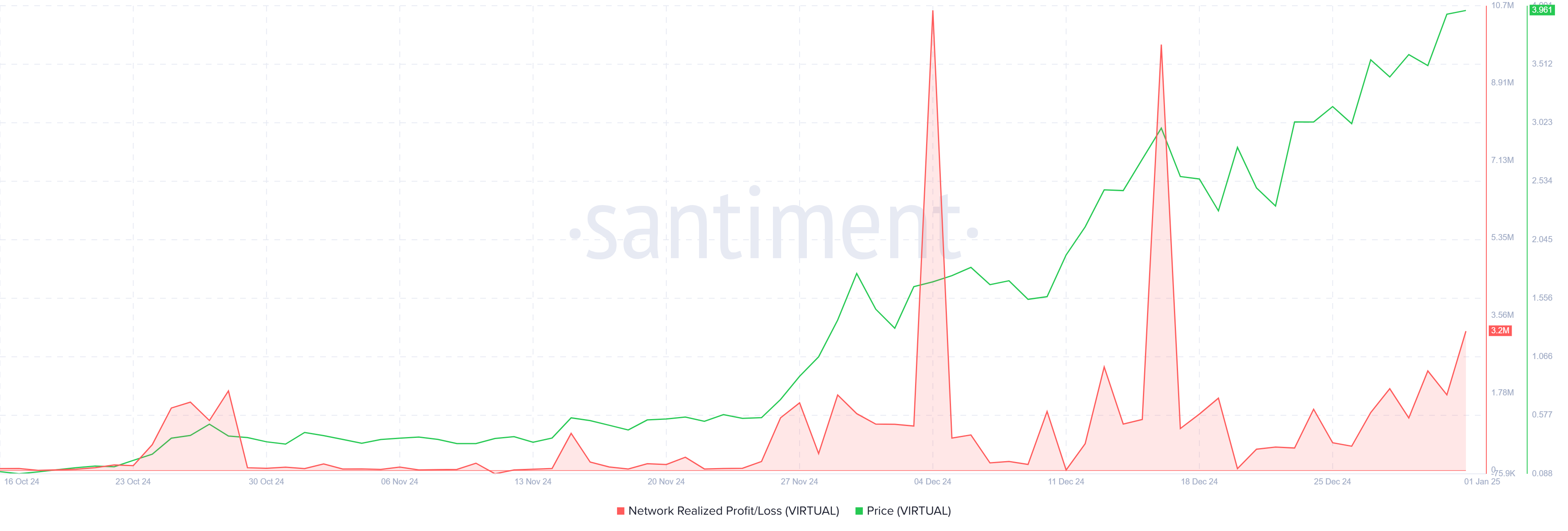 شهدت عملة فيرتشوال (VIRTUAL) اتجاهًا صعوديًا مثيرًا للإعجاب، حيث سجل العديد من الارتفاعات القياسية (ATH) طوال شهر ديسمبر. وصل العملة البديلة إلى ATH آخر في الـ24 ساعة الماضية، حيث ارتفعت إلى 4,14 دولار.