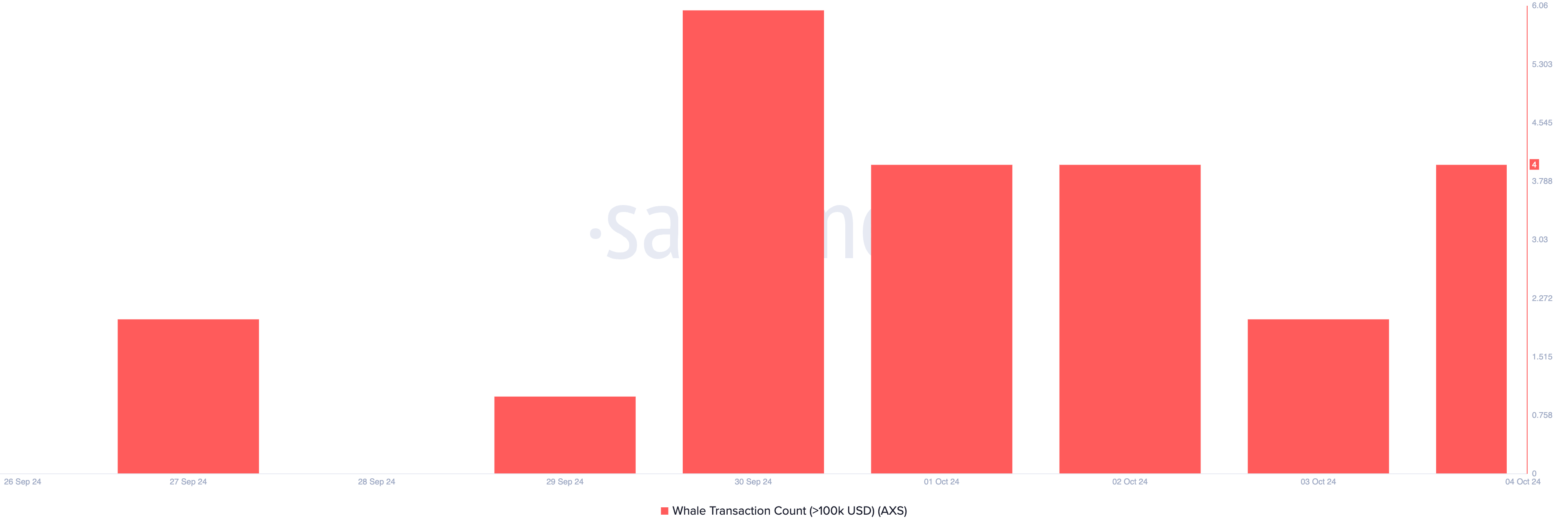 تكشف البيانات المتسلسلة عن ارتفاع مستمر في العدد اليومي لمعاملات AXS التي تتجاوز 100,000 دولار منذ 30 سبتمبر. قد يشير الارتفاع في المعاملات الكبيرة إلى تحول في معنويات السوق. إذا كان اللاعبون الكبار يشترون، فقد يشير ذلك إلى أنهم يتوقعون ارتفاعًا في الأسعار مستقبلاً.