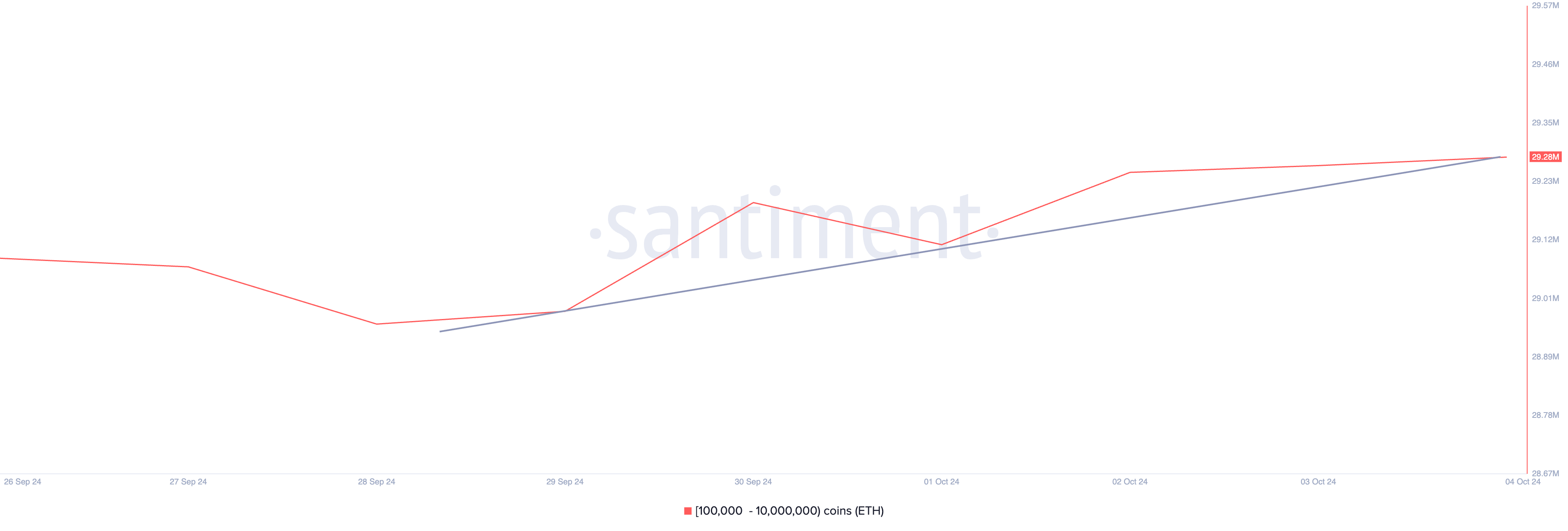 قام حيتان الإيثريوم الذين يحتفظون بين 10,000 و10,000,000 عملة ETH بذلك بالفعل. خلال الأسبوع الماضي، أضافت هذه المجموعة من المستثمرين الكبار 200,000 ETH بقيمة 476 مليون دولار إلى محفظتهم.