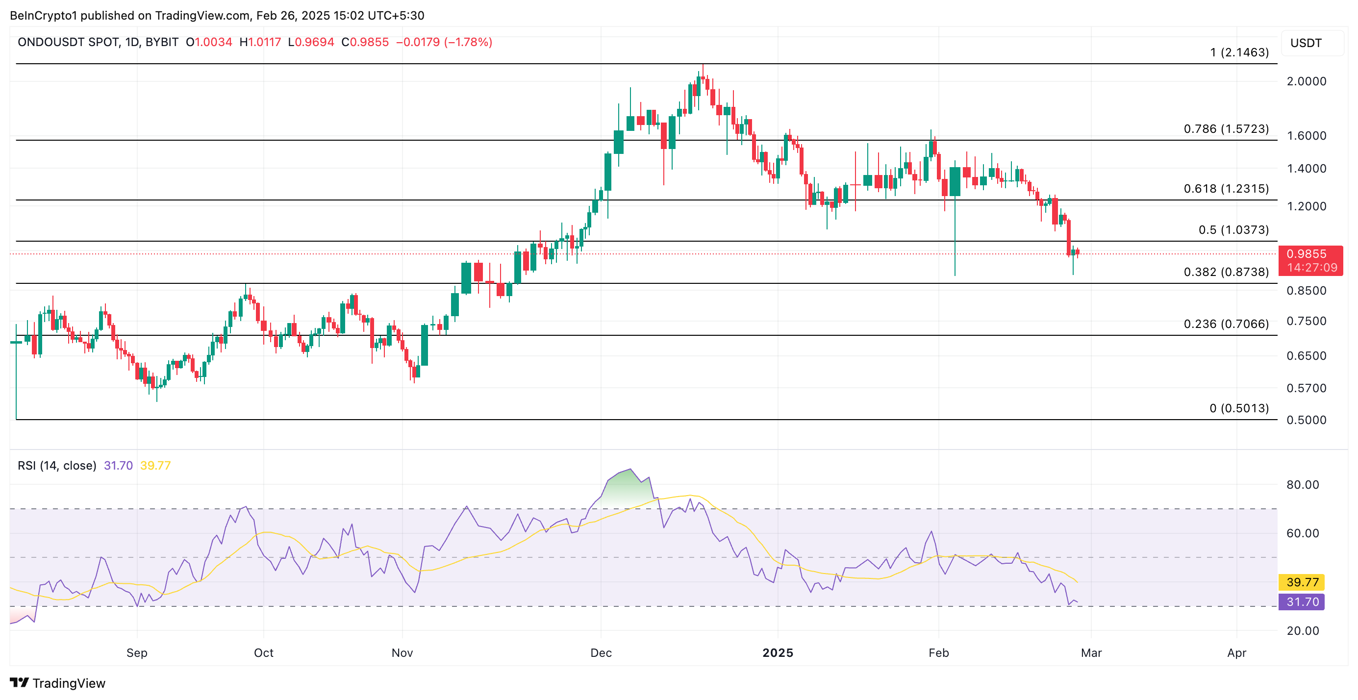 ومع ذلك، قد ينخفض سعر أوندو إلى $0,87 إذا استمر التراجع.