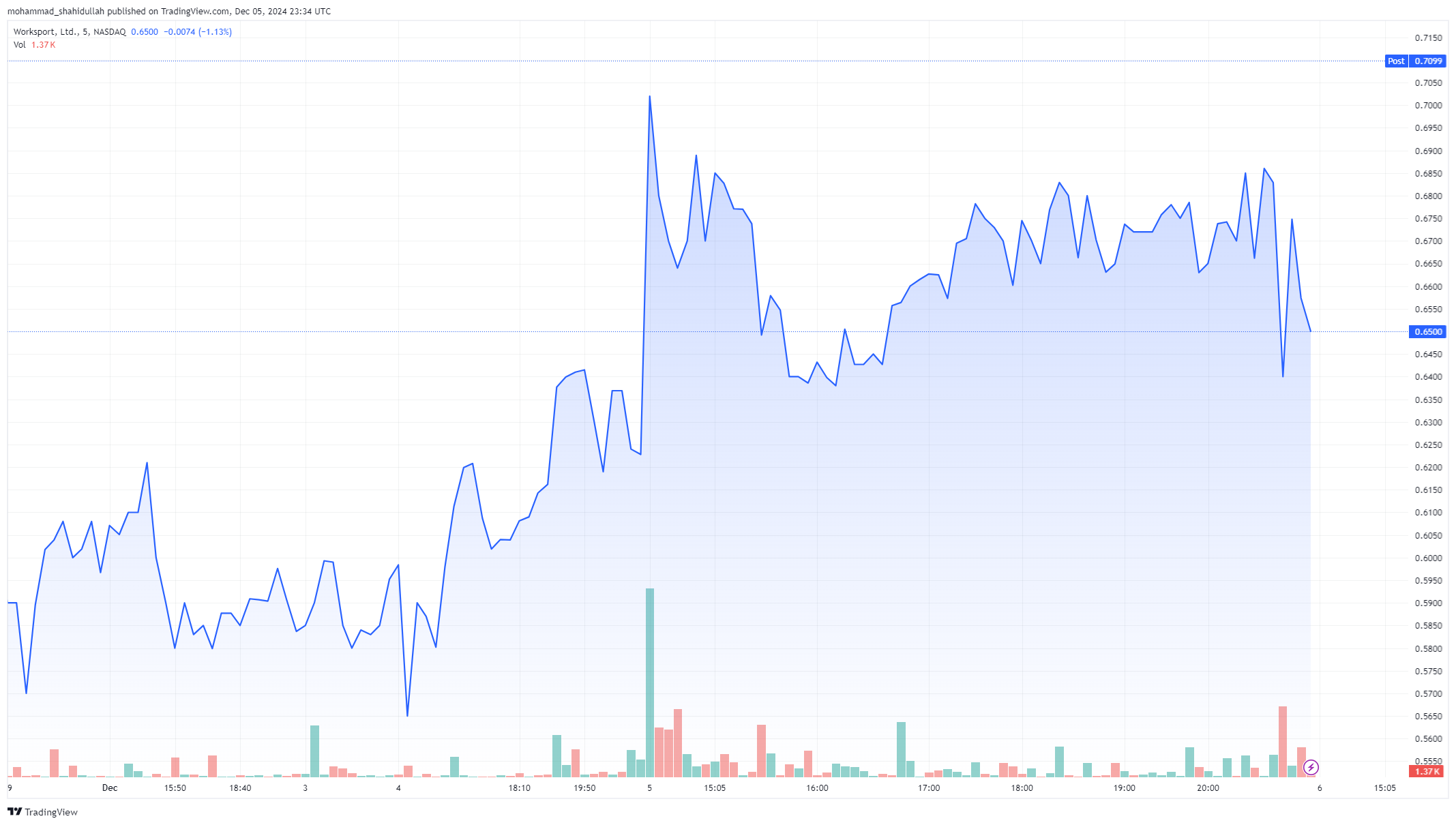 Sponsoredبعد الإعلان، ارتفع سهم ووركسبورت (WKSP) بأكثر من 6% في 5 ديسمبر. شهد سهم الشركة خسائر طوال العام، حيث انخفض بأكثر من 50% منذ بداية العام.