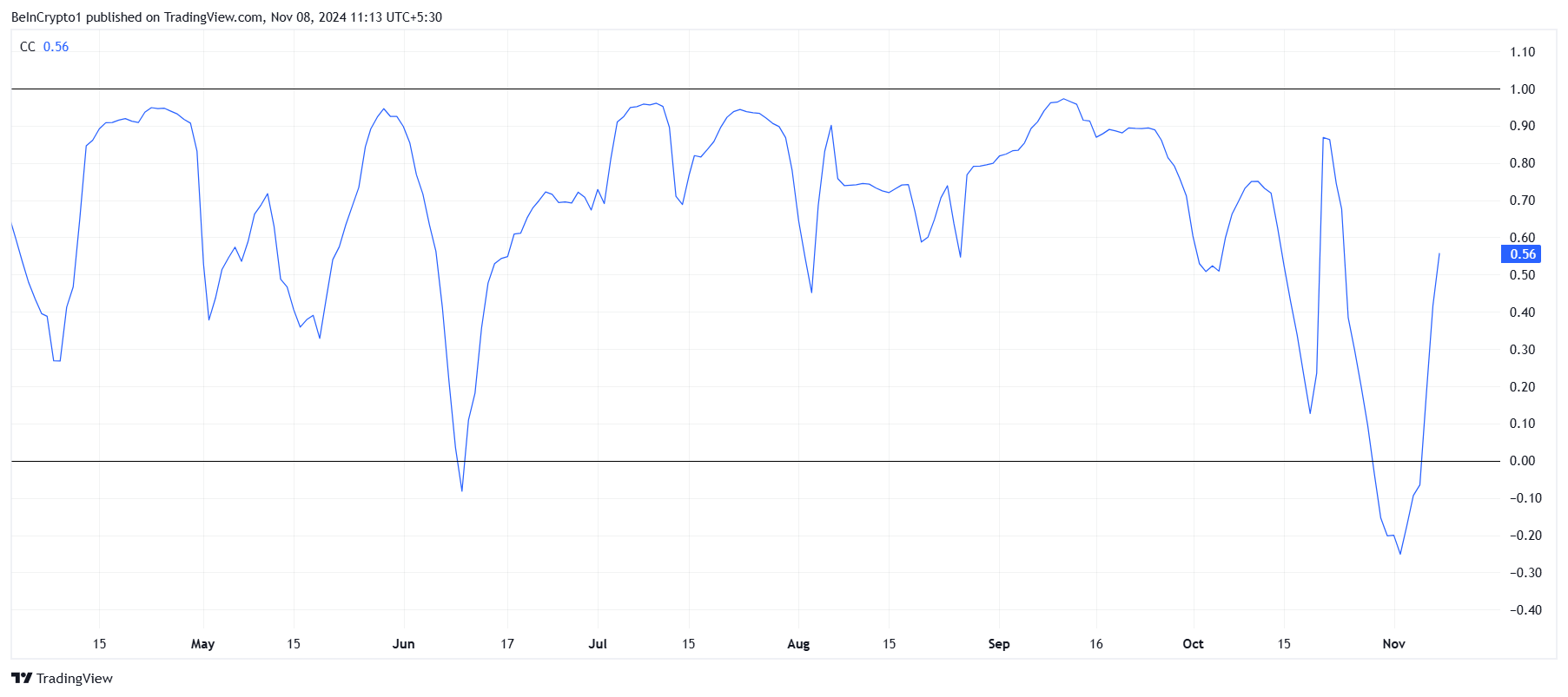 تعزيز ارتباط العملة البديلة مع بيتكوين قد يدعم سعر الـ XRP في المدى القريب. ومع ذلك، يظل الـ XRP معرضًا لأي تبريد في تجمع بيتكوين. إذا تباطأ نمو سعر بيتكوين، قد يواجه الـ XRP أيضًا صعوبة في الحفاظ على مكاسبه الأخيرة، مما يبرز أهمية ثقة المستثمرين المستقلين في مسار العملة البديلة المستقبلي.