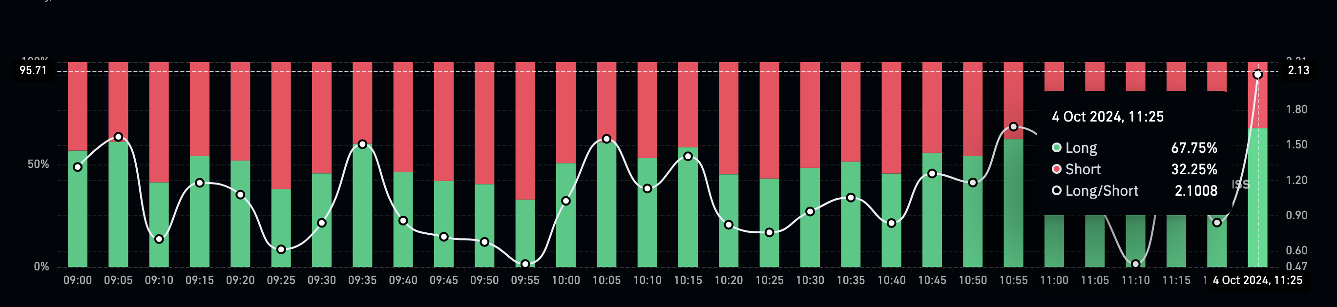 في حالة XRP، 67,75% من المتداولين يتخذون مراكز طويلة، بينما اختار 32,25% مراكز قصيرة. هذا يشير إلى أن غالبية المتداولين يتوقعون ارتفاع قيمة XRP بمجرد أن تهدأ المناقشات حول طعن SEC.