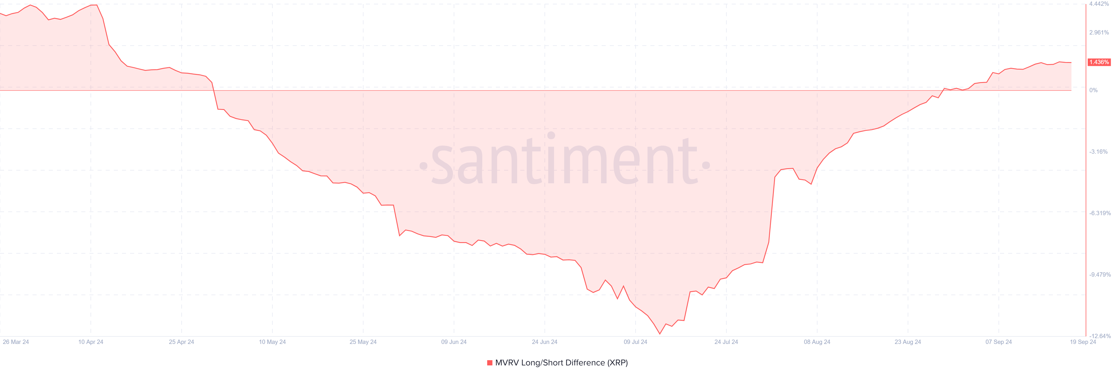 يكشف تحليل الزخم الكلي لـ XRP، الفرق بين القيمة السوقية والقيمة المحققة (MVRV) Long/Short عن تحول مثير للاهتمام. هذا المقياس يساعد في تقييم ظروف جني الأرباح للمستثمرين.